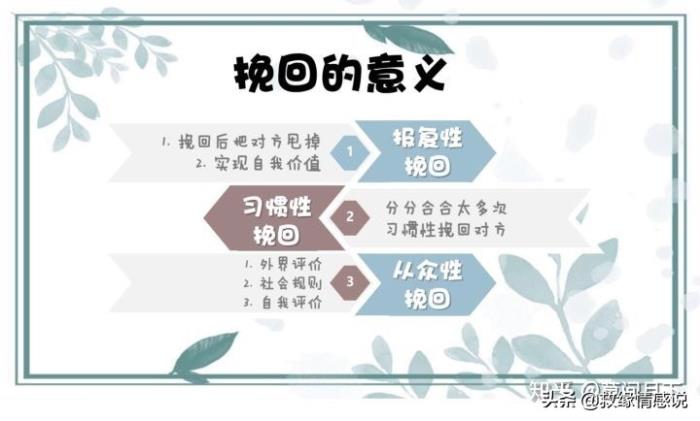 在我的经验当中,其实这类人不占少数,但通常都会对挽回表现出比较懈怠的状态,挽回的积极性其实不高。其实针对这种类型的挽回,我认为,你与其浪费时间在一个你觉得”将就“的关系上,不如把这些时间花在另外“有价值的”关系上。