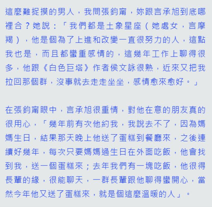 张钧甯和言承旭相识17年,称得上是红颜知己,但言承旭绝对不是所谓的大暖男。