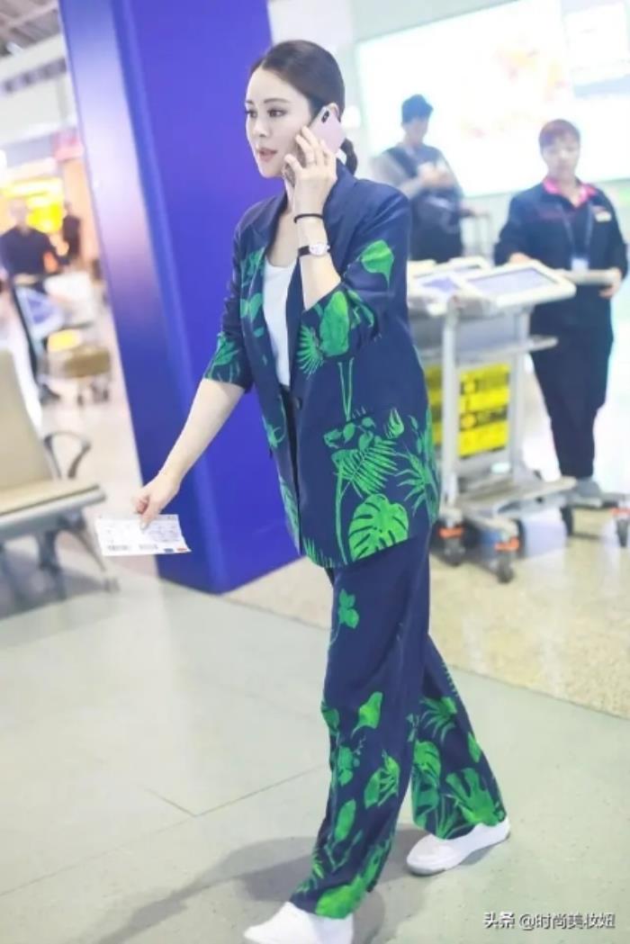 在私服穿搭中运用西装的话可以不用在色彩的选择上那么拘谨,拘泥于单一的黑灰色反而会给人一种过于严肃,拒人于千里之外的感觉,这种套装采用深蓝色为底色上面分布着绿色的元素进行装点的方式,在色彩搭配上呈现出来的效果更加适合私服穿搭或机场穿搭,脚上搭配一双白色的运动鞋也会在一定程度上打破西装版型过于拘谨的效果。