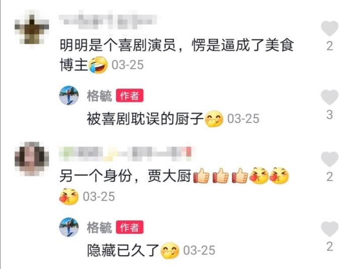 更有网友留言:"明明是个喜剧演员,愣是被逼成了美食博主""一个被演戏耽误的贾大厨"。