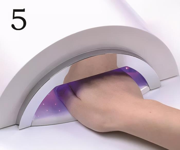 如图为包裹所有手指的效果,静待5-10分钟后,我们将卸甲用品整体取下