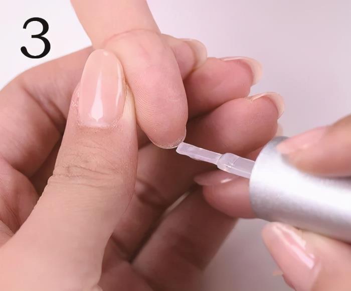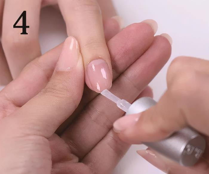 涂底胶:顺着指尖的方向,刷上一层薄薄的底胶