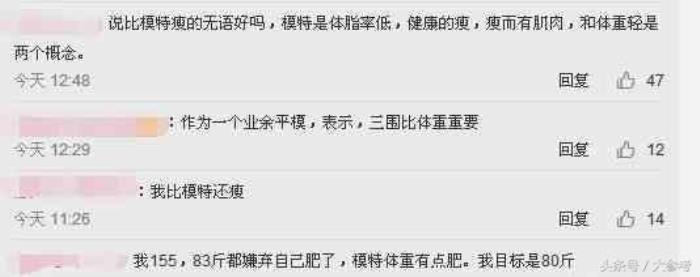 172你和我说65???我55都嫌自己胖!这个体重要求不过分啊!我155,83斤都嫌弃自己肥了,模特体重有点肥。我目标是80斤!我比模特还瘦!作为一个业余平模,表示,三围比体重重要!说比模特瘦的无语好吗,模特是体脂率低,健康的瘦,瘦而有肌肉,和体重轻是两个概念。