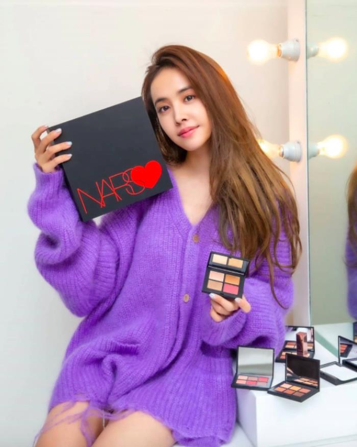 蔡依林日前于IG分享「工作照」,宣传所代言彩妆品牌,穿着对亚洲人来说禁用的死亡电光紫,这种紫色谁穿谁显黑,而蔡依林选择的这款电光紫色V领毛衣,玩下了下半身失踪,不但不会显黑显瘦,整个人气色还显健康,原因在于她用以配搭死亡电光紫的发色,是与紫色相搭的带棕橘色发色,发色不但会中和紫色对黄肤色人士的“显黑”伤害,不会过于抢眼的心机发色,看上去温柔感十足还十分显白。