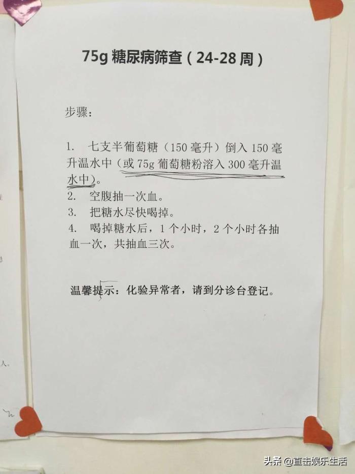 检查项目:血压、体重、宫底高度、腹围、胎心率、糖耐量筛查(75gOGTT)、血常规、尿常规