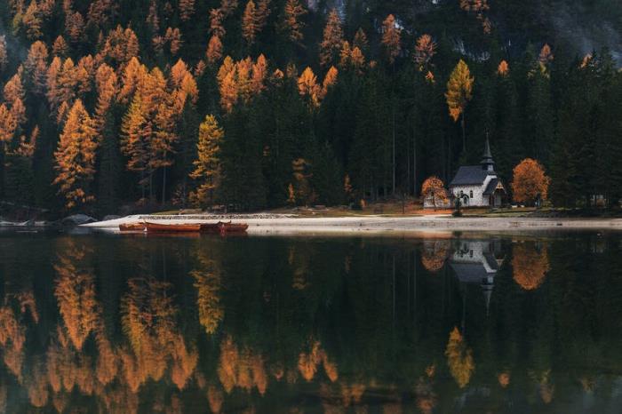 最常见的是,在拍摄倒影时,水平线往往会作为图像的分割点出现。倒影可以足够美丽和强烈,无需引线的帮助即可突出照片的构图。