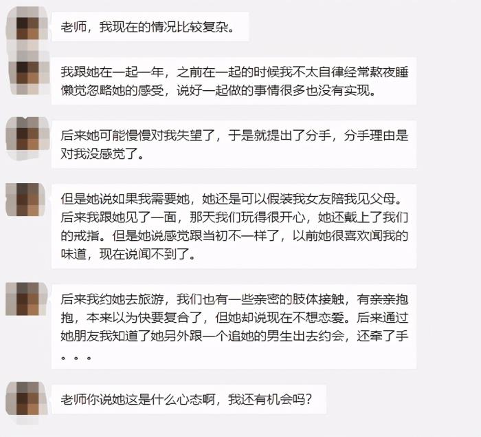 这让我想起了最近一个男访客,他想救前女友,坚持不复合,但没有抗拒和他近距离接触,还在和另一个男的接触。