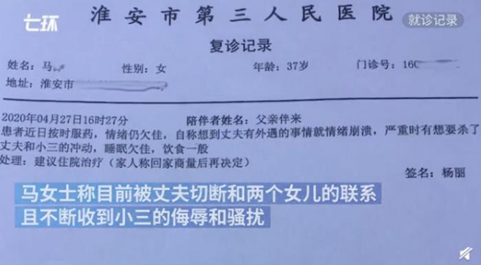 马女士称,李某只要工作中有接触女性的机会,都不会放过,并用两个微信号和多名异性发生不正当关系,她自己本人因为丈夫常年出轨,被折磨得患上抑郁症,先后四次入院治疗。