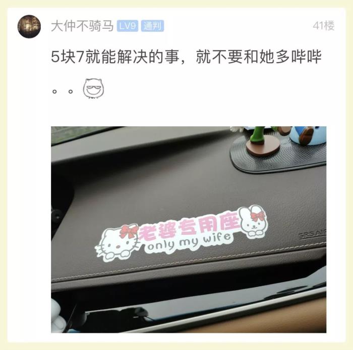 妻子认为副驾驶是“妻子的座位”,