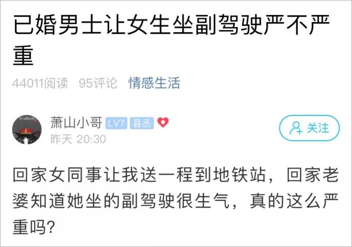 已婚男士让女生坐副驾驶到底严不严重?