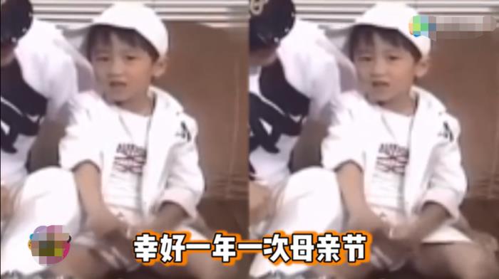 采访过程中,谢霆锋全程坐在父亲大腿上,乖巧至极。不过,他却丝毫不怯镜头,在记者面前还向记者发起牢骚来,庆幸"还好一年只有一次母亲节",充满了童真。