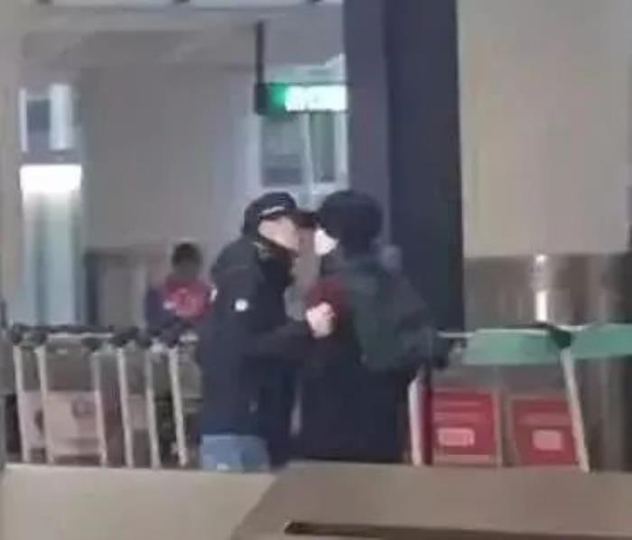 王菲乖乖地在位子上等谢霆锋办手续,找不到人,急得大喊他名字。他便找过来,哄着她。