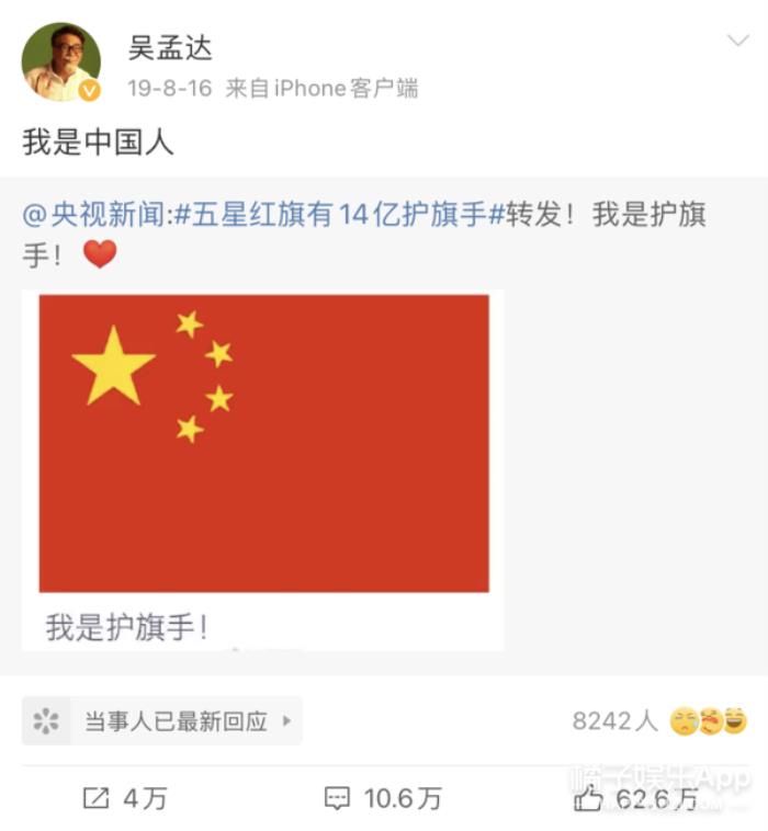 达叔兴冲冲地发了一条为国骄傲的内容。