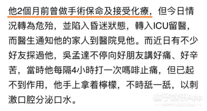 2月22日,网曝吴孟达秘密入院,在肿瘤科接受治疗。