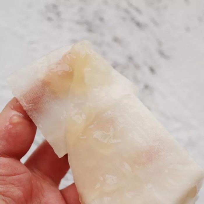 小幺最心水的一点是:面膜本身的材质超级薄,薄到能看皮肤,精华液也是特别多,敷完肌肤水嫩嫩的而且会变白哦!