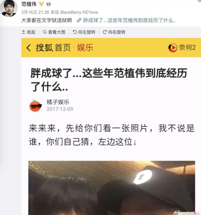 他自己就无所谓,还转发DISS自己的文章,直言自己胖成球了。