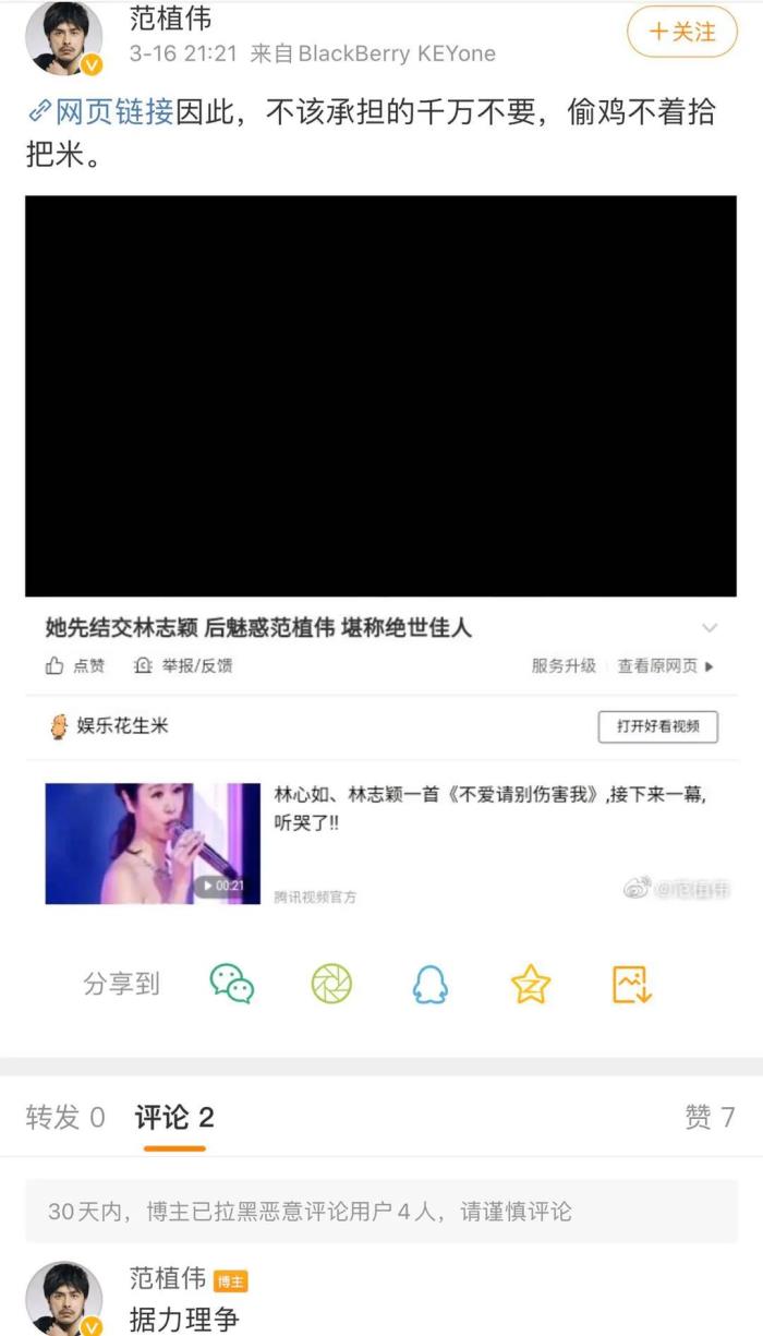 揭露女方的过去,自己也变成“渣男”,范植伟的行为真是损人不利己。不过,对艺人来讲,网友对他的冷漠与无视,也算是对他最好的惩罚了吧。