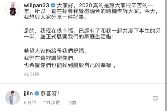 不过林俊杰的评论倒是很正常说的“恭喜。”
