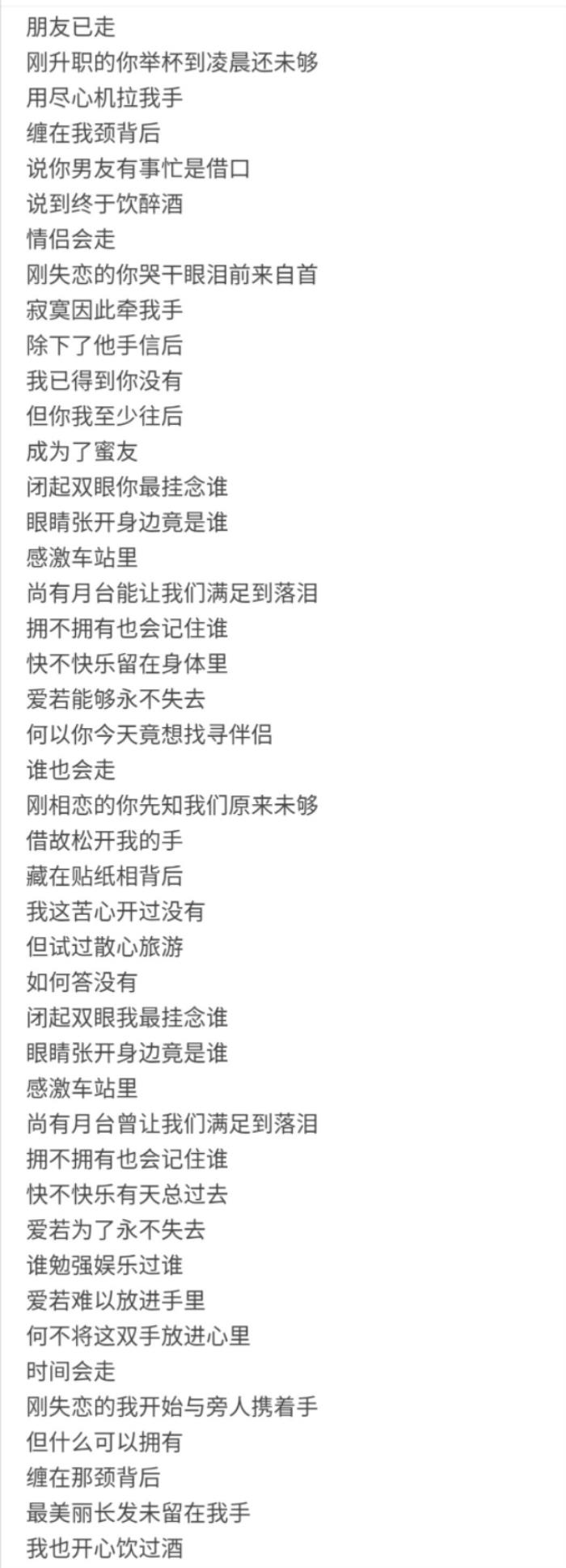 而《人来人往》这首歌算是一首备胎之歌。其实我喜欢这首歌并不是因为歌词,而是因为曲调,前奏响起,便有一阵忧伤袭来,让人的心一阵阵钝痛。