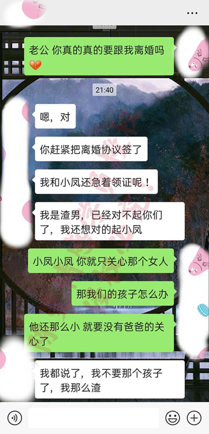 一开始,还不错。其实他还是和以前一样关心我,宠着我。但是有了孩子之后,他就不在乎家人了。然后我开始一直谈论我自己。一开始我以为他是在跟我开玩笑,所以没多想。他以为我不在乎,说他越来越人渣。最后突然要求离婚,连房子孩子都不要了。我留着他,怀疑自己是不是做错了什么。感觉他越来越不对劲了,偷偷翻了翻他的手机,发现他的聊天对话框里除了我还有一个人在说“宝贝”。