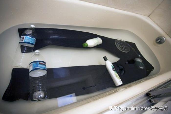 ② 将牛仔裤反面,用重物压住,水平放在水里