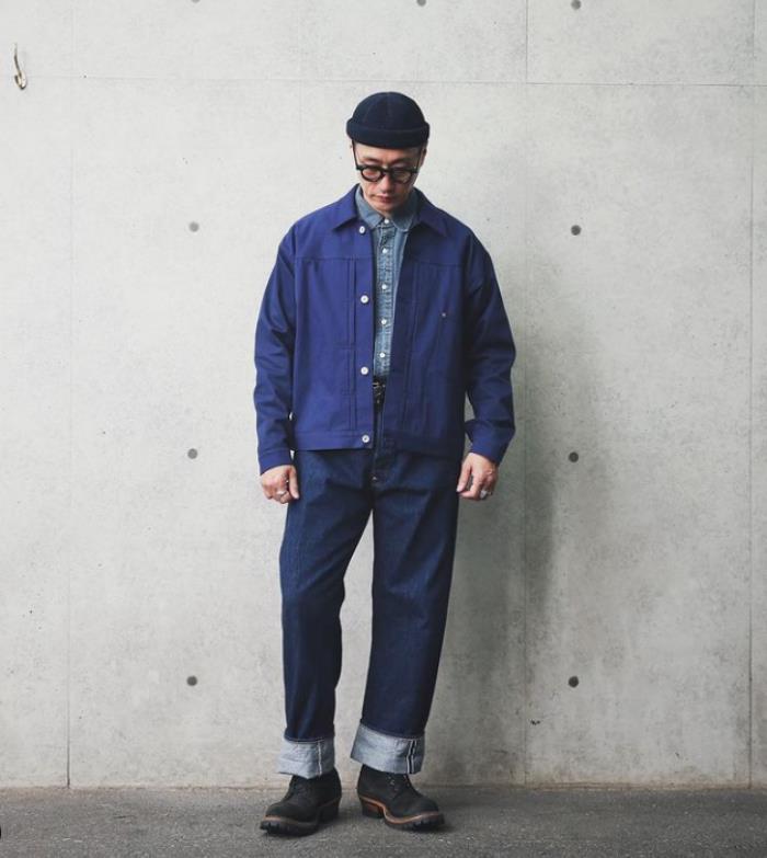 宽松直筒的款式也是很有特点,但是搭配时腰线和脚踝处都要处理好,避免裤子松垮的效果让造型出现臃肿感,这时翻折裤口就显得很有必要,打造出来的状态复古工装风十足。