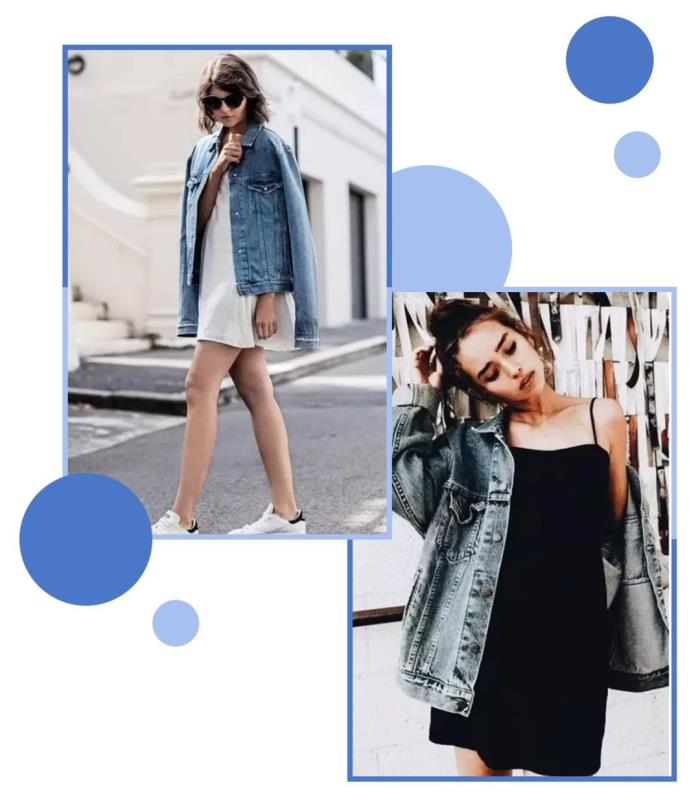 如果实在不知道要如何选择,那干脆就选择这种黑色或者是浅色调的连衣裙外搭配上一件高腰款的牛仔夹克外套,或者是中长款的牛仔夹克外套,同样能够打造出我们想要的时尚气质。