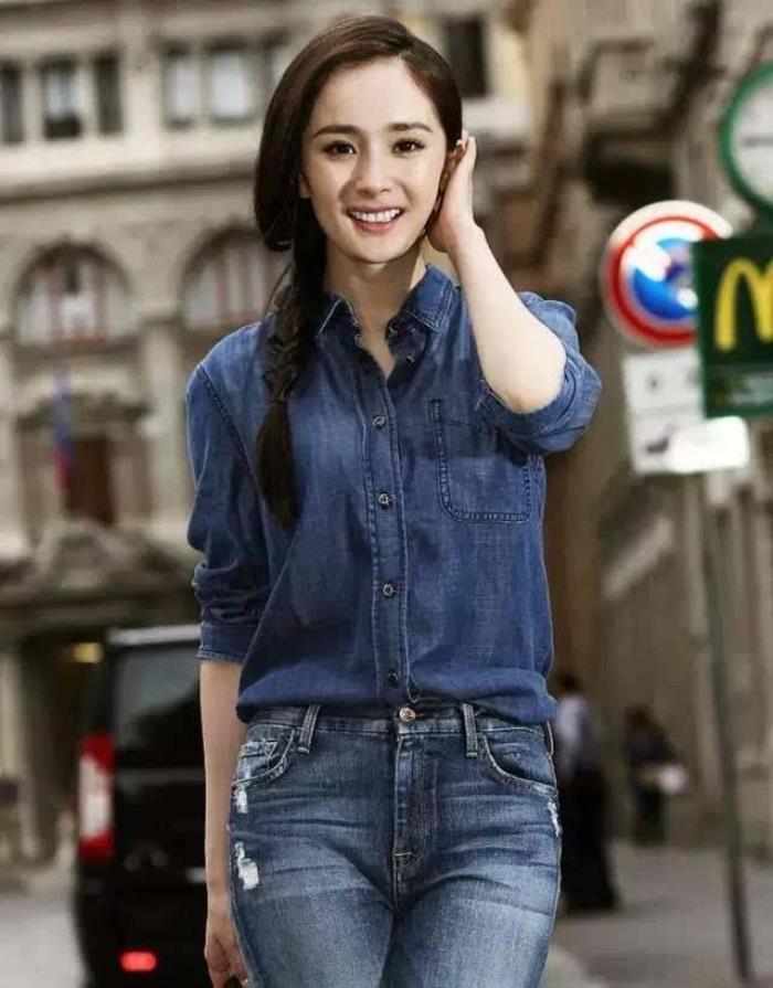 牛仔单品之所以能在时尚圈长盛不衰,其主要原因还是在于它的通用性,极高的可塑性,无论与什么服饰单品搭配,都有随性的街头休闲感,现代感。面料挺括,风格偏中性,而且老少咸宜。杨幂此次的造型便穿了一身牛仔LOOK出街,扎着麻花辫,整个人的气质瞬间变得休闲、随性、温婉感十足。
