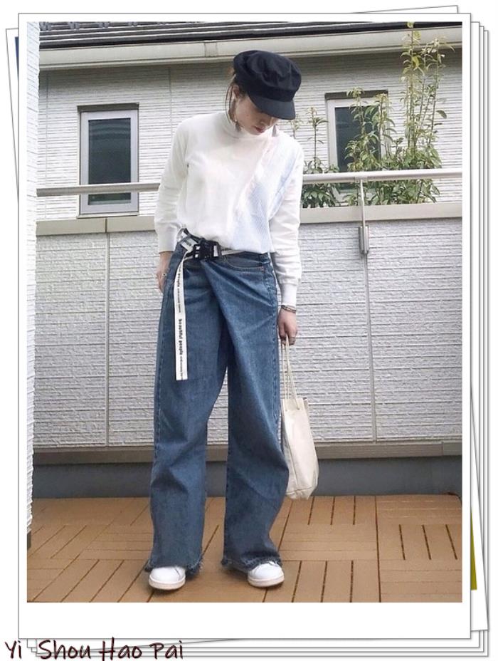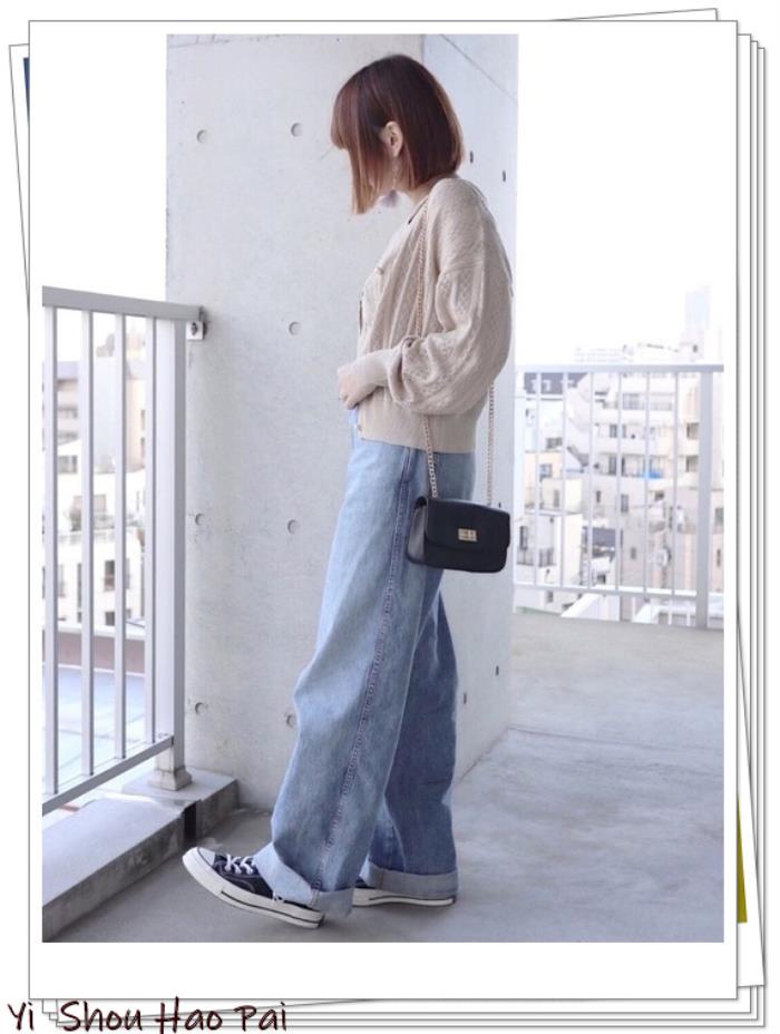 超流行的牛仔阔腿裤日系穿搭,兼具美丽与休闲的时尚穿衣技巧。
