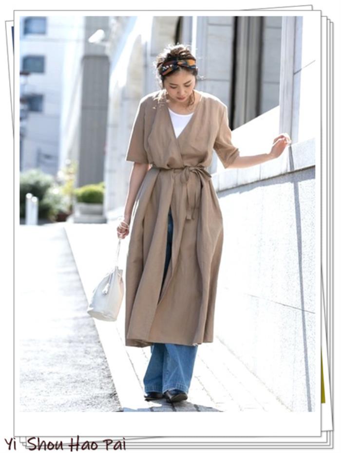 对于休闲牛仔阔脚裤,搭配风衣可以显得轻熟甜美。再加上圆点图案上衣的整洁形象,它成为一个沉稳的造型。脚下高跟鞋,给人一种优雅轻熟的印象。