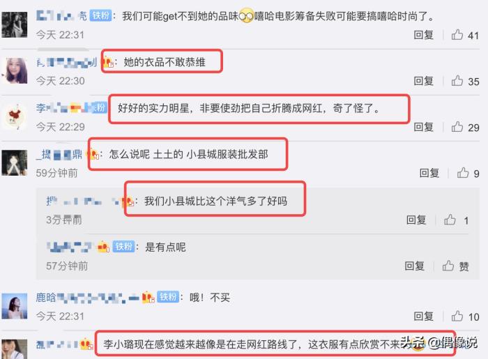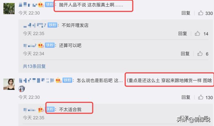 网友吐槽:抛开人品不说,这衣服真土啊;这么土穿起来跟地摊货一样;她的衣品不敢恭维;感觉越来越像是在走网红路线了。