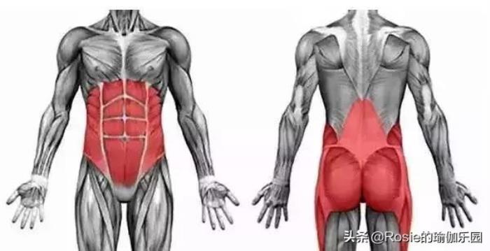 核心肌肉群担负着稳定重心、传导力量等作用,对上下肢的活动、用力起着承上启下的枢纽作用。强有力的核心肌肉群,对运动中的身体姿势、以及各种瑜伽动作起都着稳定和支持作用。