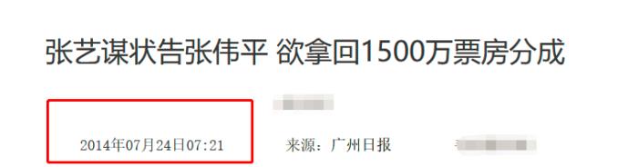 有媒体曝料:张艺谋再次起诉曾经的老板兼合伙人张伟平。
