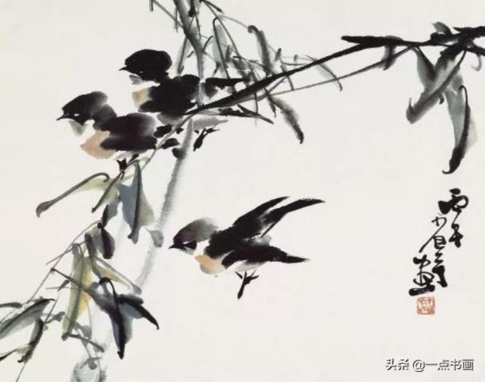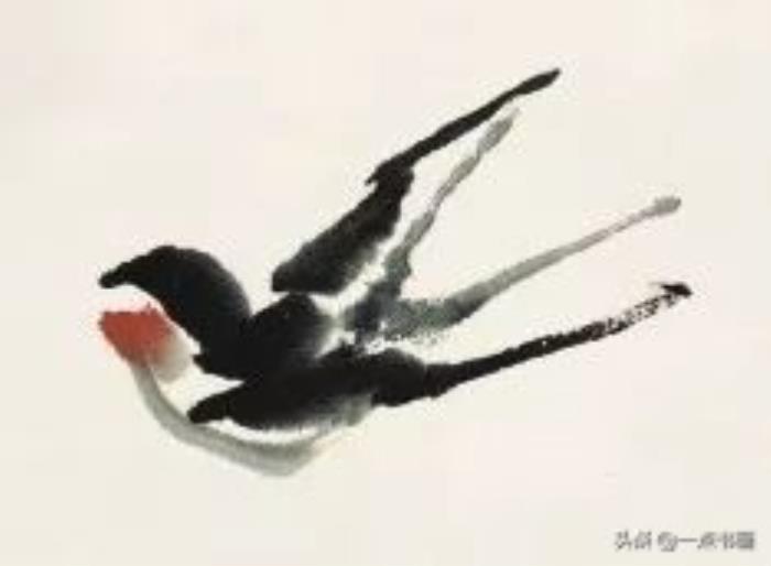 燕子的写意画法1.画鸟先从喙部开始,然而写意燕子是先蘸好墨色从头部画起,再画背、翅,而后加画喙、眼、胸、腹、尾、脚,最后施红色,可见有画法,而无定法。2.用笔要简练、准确、随意、生动,不可无形,但又不可拘泥于形,画出动感,画出神情即是上乘。3.飞翔的燕子,双脚一般回收于腹下,它的动势也是表现动感的重要部分,不可忽视。4.眼睛的表现,一般用浓墨点画即可,不一定用双勾线条画出眼球,这样易概括提神。5.多只燕子飞翔,应有远近之分,浓淡之别。