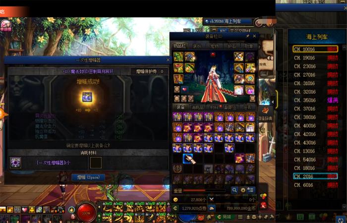 首先,每次旭旭宝宝开播,他所在的频道一定是爆满的,而且一般不挤半小时都进不去,在那个频道里,你可以看到各种高强装备的成功或者失败记录,在刷深渊的时候瞅一眼,还是挺带劲的。当然,如果你想要强化或者增幅装备,还可以瞅准时机,拿旭旭宝宝当作垫子,然后一发入魂,下面这位玩家就是利用旭旭宝宝当作垫子,然后一发增幅12成功!
