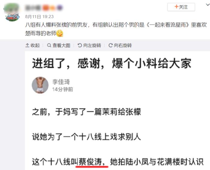 有爆料张檬的前男友是十八线演员蔡俊涛,还晒出了两人的“亲密”合照。