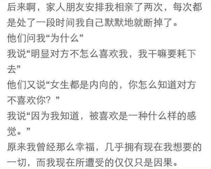 看到我喝醉的哥哥,我真的很难过。我知道他后悔那个好女孩结婚了。但该做的都做了。就算现在眼泪流进河里,她也回不来了。作为一个曾经去过那里的人,我能理解那种心情,并且怀念那个好男人,并且活该伤一辈子!