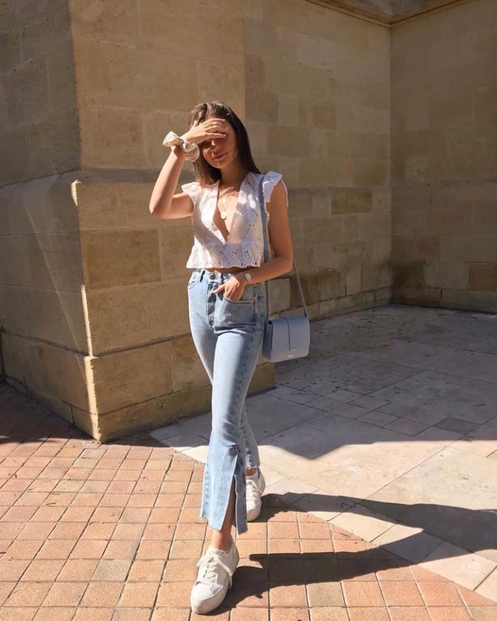 现在相信喇叭裤和小白鞋的显高效果了吧,想知道具体是怎么搭配的吗?跟着小编我来盘点一下吧~