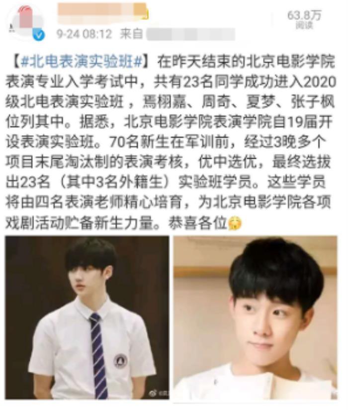 而且孙艳还考上了北京电影学院,因为成绩优异,她进入表演系的实验班。班级成员有夏梦(马梅芷)、牛惠莹、潘珺雅、宋如茵、孙艳、何子怡、张子枫、李乐园、沈星彤、王梓莼、杜柠汐。