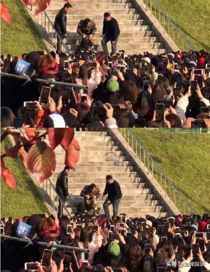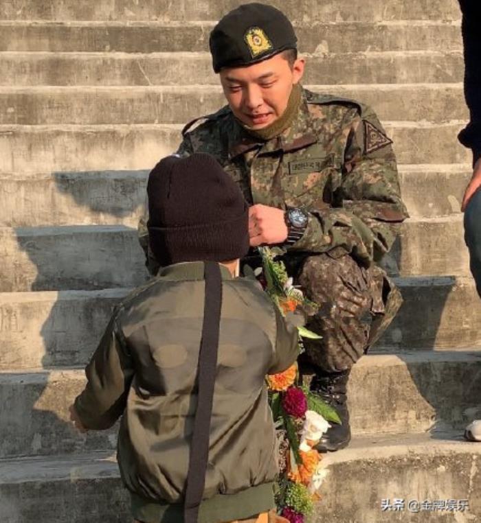 在应援现场,有个粉丝甚至还带着自己的孩子前来,想给权志龙送上自己亲手编织的花篮。而在台阶高出的权志龙看到之后,赶忙从台阶上快步走下来。