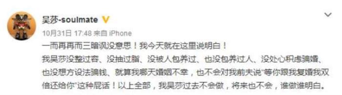 “婚后因性格不合,于今天结束这段婚姻,希望今后各自都有更美好的人生,祝愿彼此。”