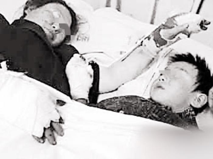 图片里的妈妈为了救自己的儿子,竟把自己的手送进了黑熊的嘴里,用以替代儿子被黑熊咬住不放的小手,最后母子得救,医生说,若不是这位妈妈把自己的手送进了黑熊嘴里,小孩子的手肯定是保不住了,而这就是令人动容的母爱。