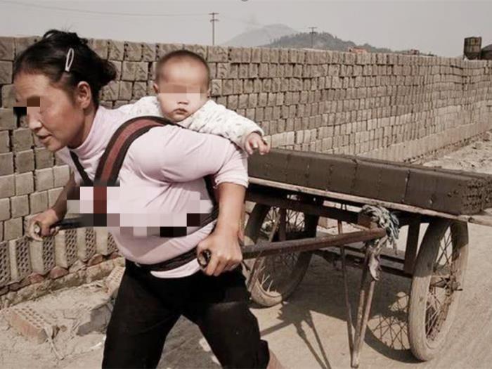 为了背上小宝宝能够生活的好上一些,这位妈妈每天都要在砖厂来回拉着这些重物,同时还不忘将孩子背在身上,怕孩子哭闹,这份母爱何止“辛苦”两字能概括。