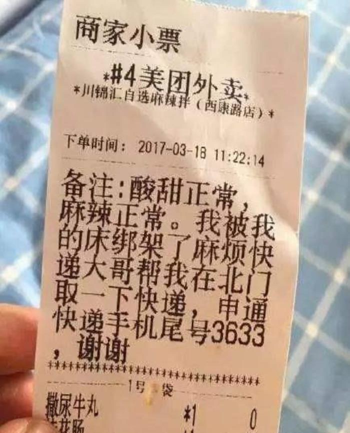 订外卖不忘让外卖小哥拿个快递,这也~这也懒到一定地步了吧,哎,外卖小哥太不容易了,也着实厉害啊,在我们的生活中充当着这么多的角色,一起为外卖小哥点赞!!!