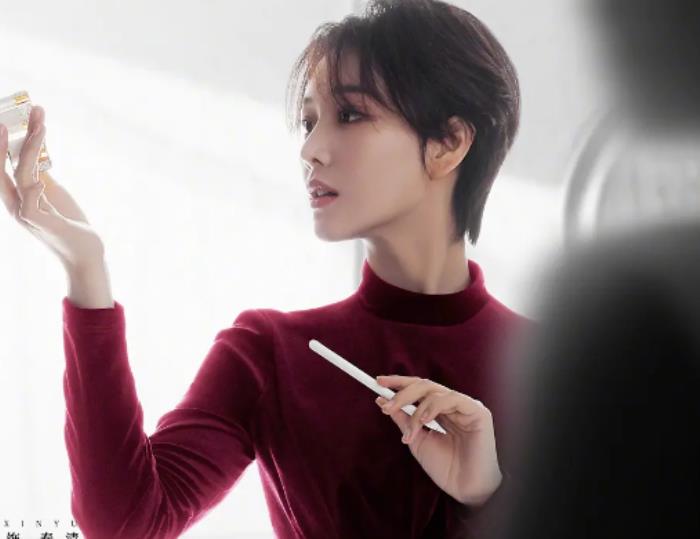 这次张馨予剪了短发,显得清丽干练,和剧中秦清的角色也是蛮符合的。