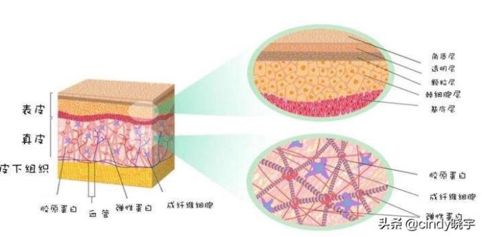 皮肤是人体内最大的器官,由外至内分别是表皮、真皮、皮下组织。