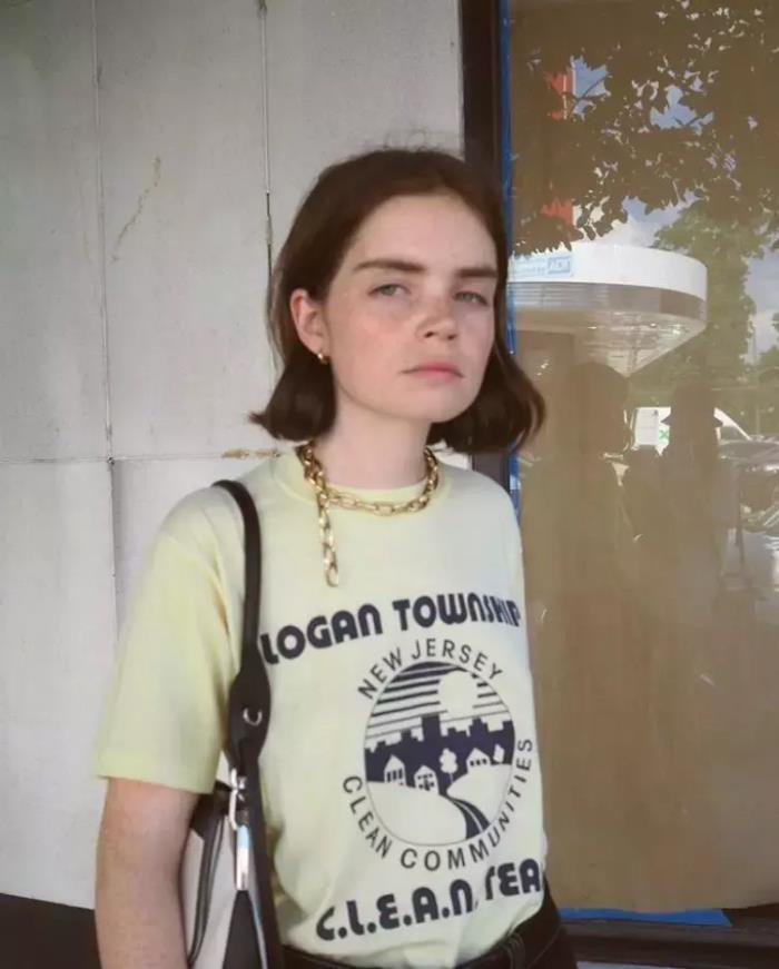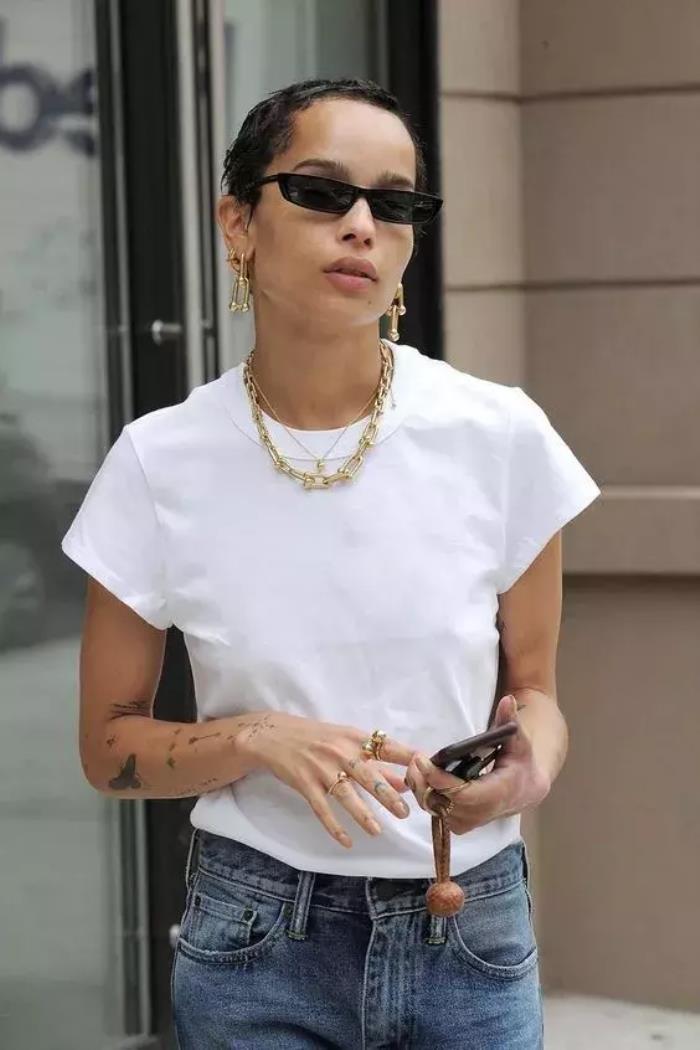 纯白T就能靠一个大金链子穿出大姐大的气质。