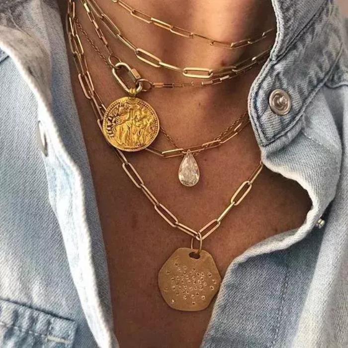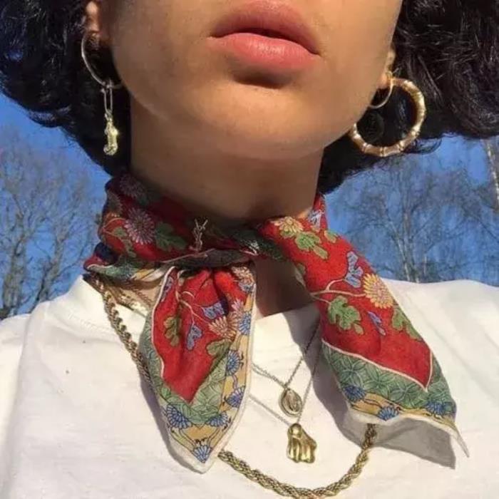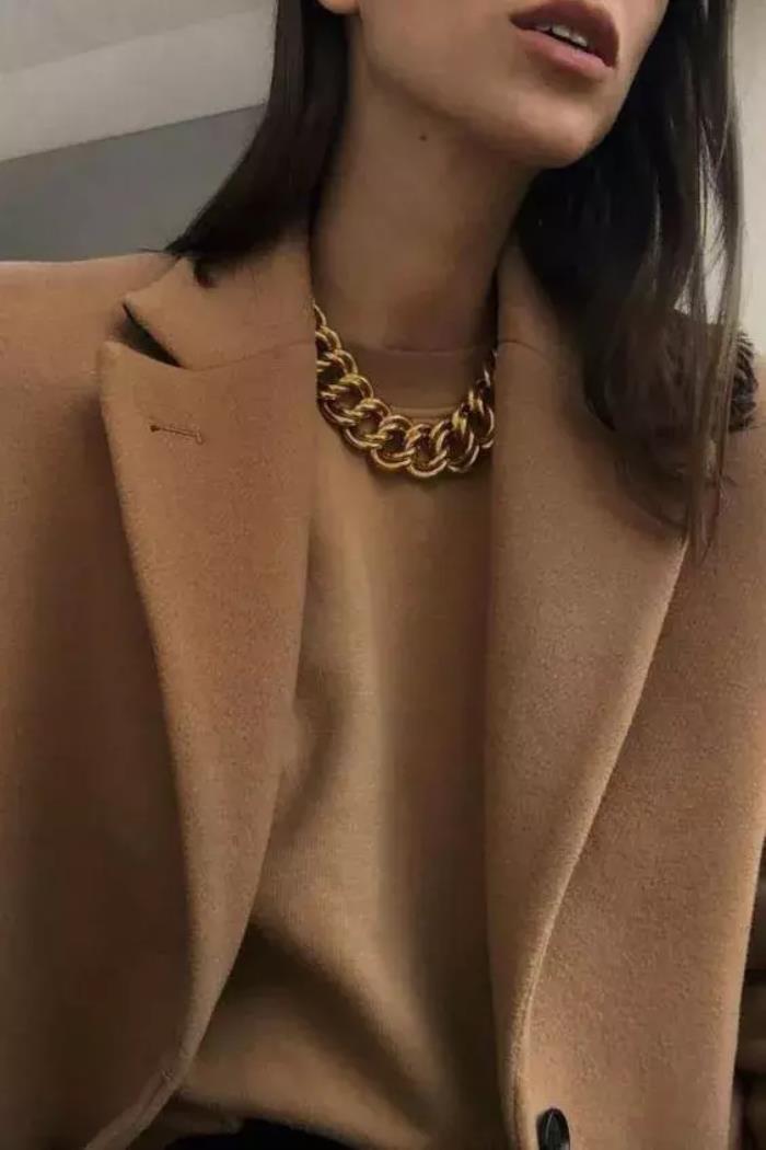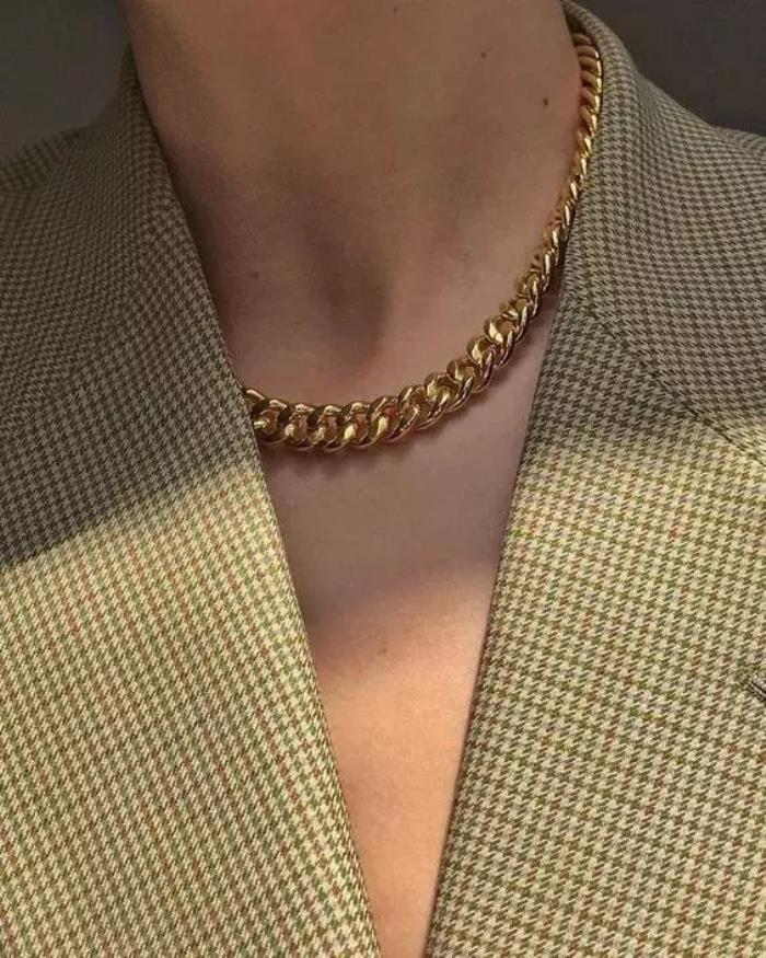 没那么粗的金链子,还可以和丝巾叠搭,超级特别。