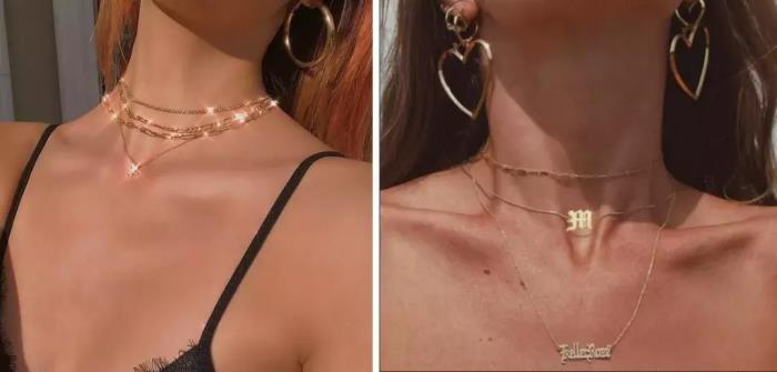 大金链子和细链条叠戴更出彩,更适合夏天露出肩颈。