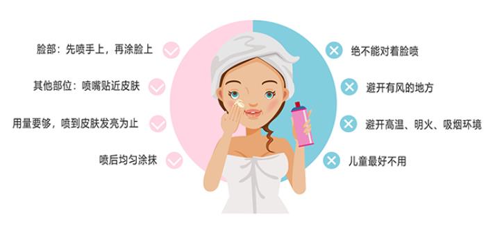 1. 绝对不能直接对着脸喷,避免吸入而导致过敏。
